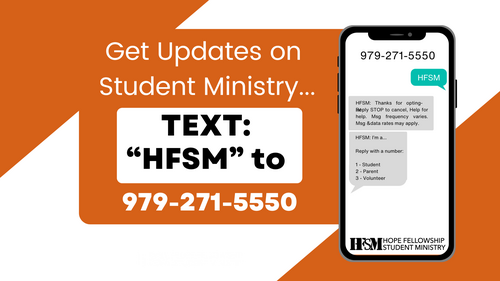 We know that email is not for everyone, so get your instant communication by text. Text "HFSM" to (979) 271-5550.
